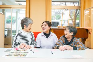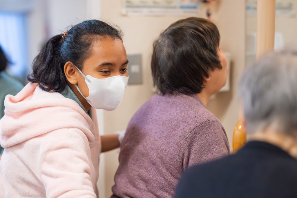 ウィルダさん:ここはデイサービスなので、朝、利用者様のお迎えをして食事・入浴・排泄介助が主な仕事です。その後は、利用者様とレクリエーションや脳トレ、お話をしてコミュニケーションをとります。ただ、私はまだまだ日本語を勉強中で言語の壁がある分、利用者様の介助にあたるときは笑顔を大切にしています。